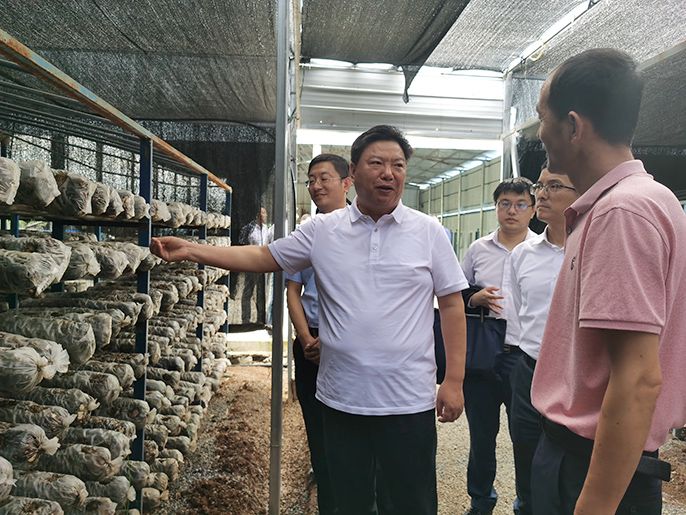 国文清首先来到了集团公司援建的香菇产业示范基地。自2017年以来,集团公司坚决贯彻“特色、精准、长效”的扶贫原则,坚持“集中投放、集中展示”,在花垣县的香菇种植和苞谷鸭养殖领域开展了有效的产业扶贫工作,被国务院扶贫办评为“企业精准扶贫50优秀案例”。