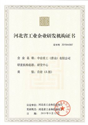 4月23日,中国二十二冶中冶重工唐山公司研发中心荣获由河北省工业和信息化厅颁发的河北省工业企业研发机构(A级)证书。