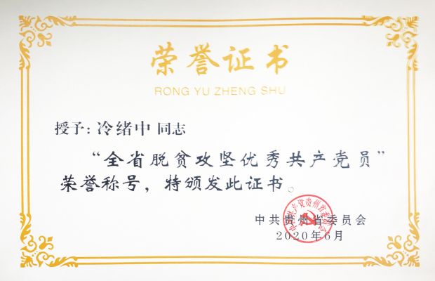 中国二十冶扶贫挂职干部冷绪中获“贵州省脱贫攻坚优秀共产党员”称号