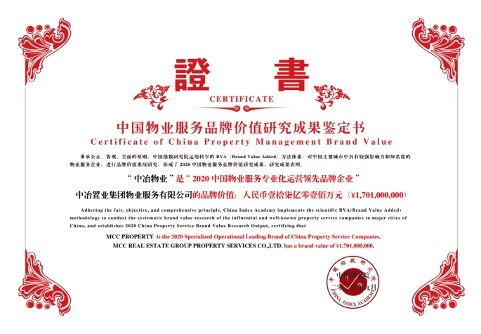 中冶物业当选“2020中国物业服务专业化运营领先品牌企业”