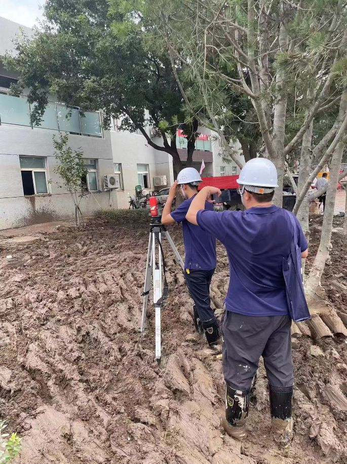 中冶建研院党员突击队员进行房屋倾斜检测
