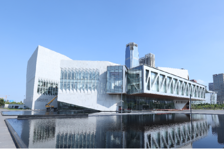项目位于天津市滨海新区,建筑面积4.5万平方米,建筑单体最高38米,设有音乐厅、演奏厅、黑盒剧场及排演厅四个单体建筑,呈不规则多面体外形,单体间由五条大跨度连廊相互贯通,是“音乐界的哈佛”茱莉亚学院美国本土之外的首家分院,也是中美之间文化艺术交流的有力见证。