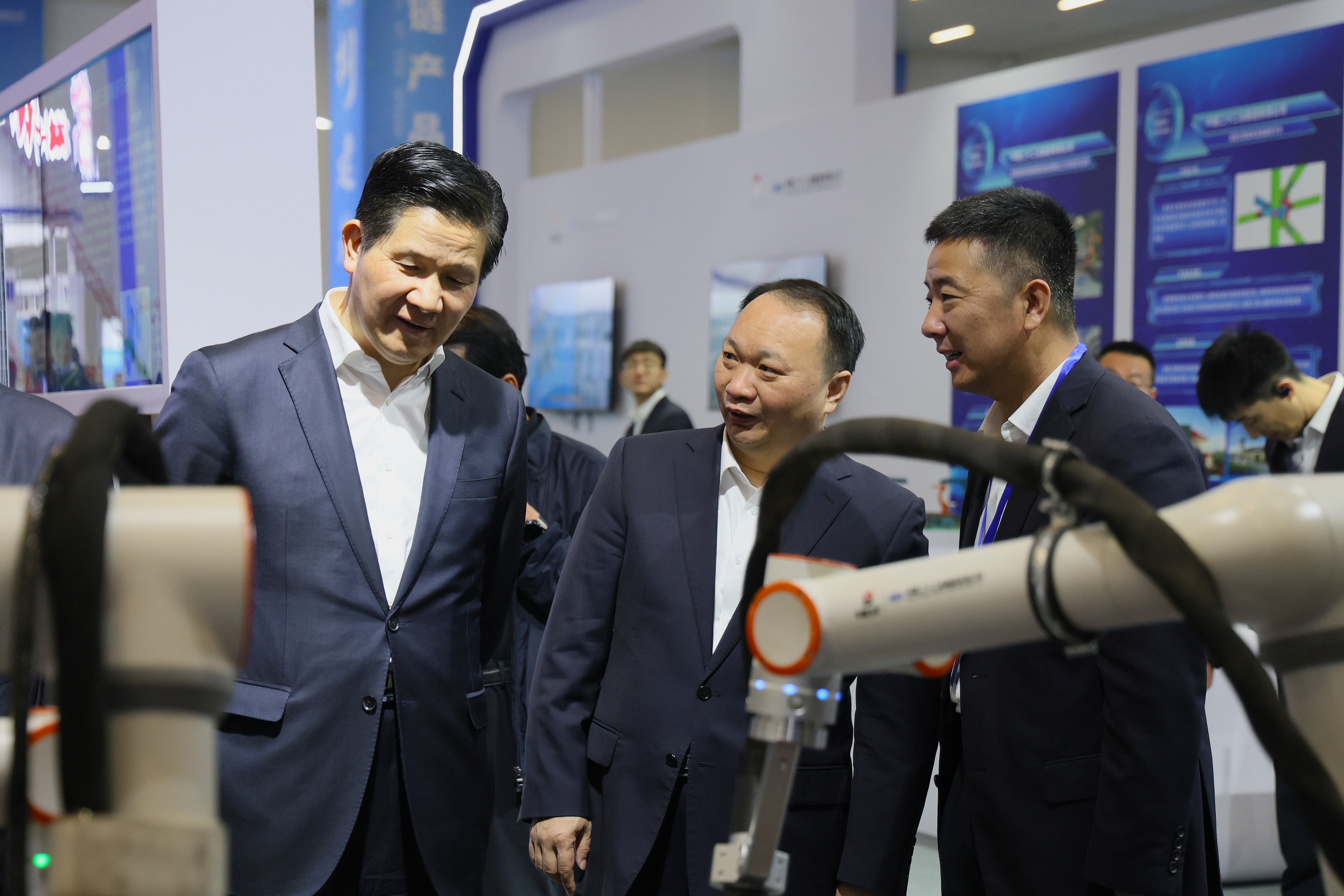 启动仪式前,陈建光到钢结构建筑产业链产品展览集中参观相关创新成果和产品。
